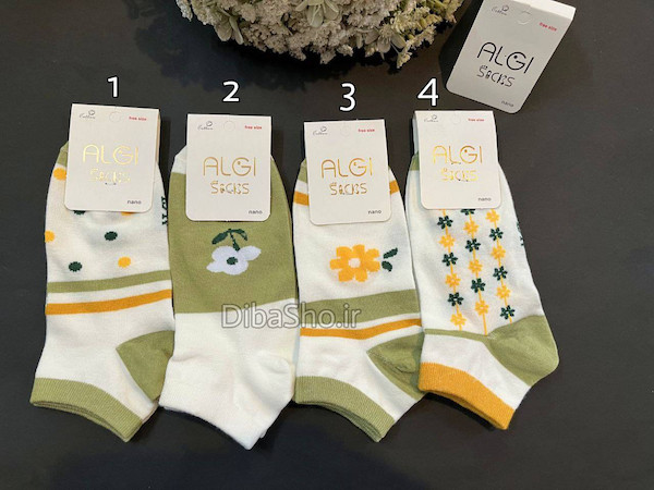 جوراب مچی زنانه تم سبز گل